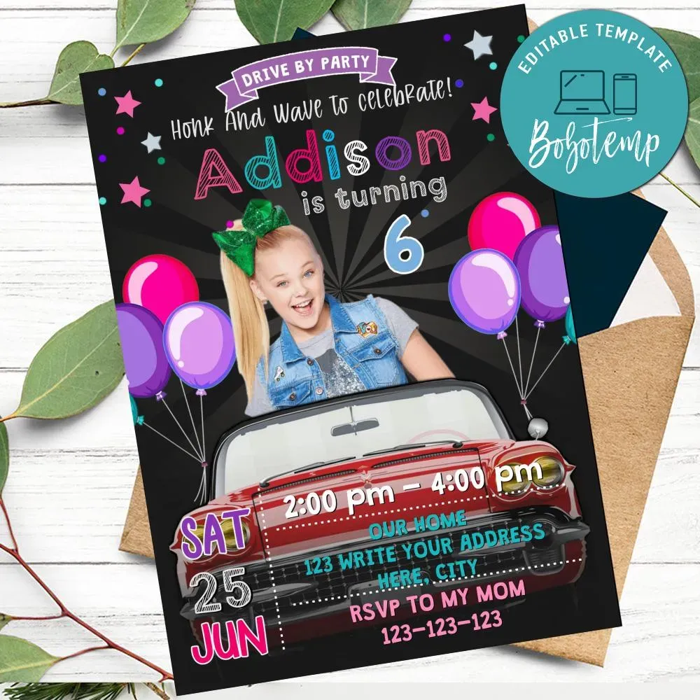 Jojo Siwa Car Parade Birthday Invitation Printable Diy Bobotemp