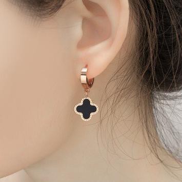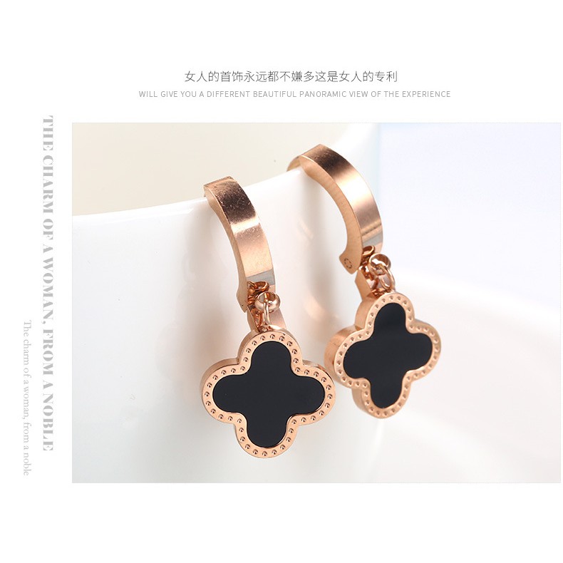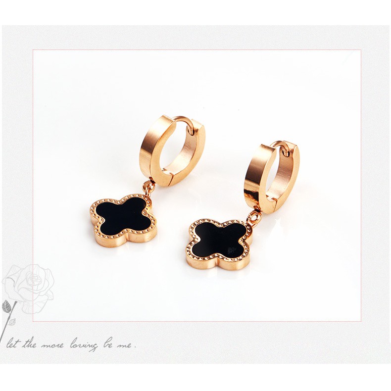Anting Fashion Korea Titanium Clover Gantung Rosegold Simple