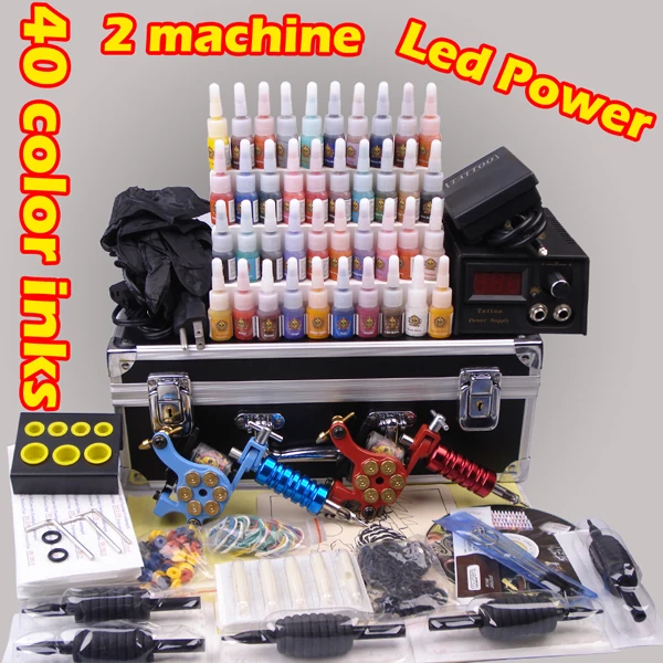 6 14 40 Colors Optional Ink Tattoo Kit 2 Machine Gun Tattoo Power