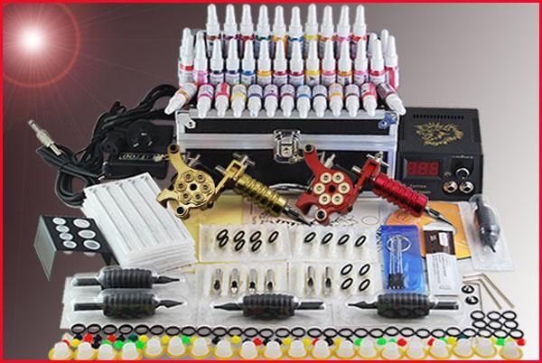 Tattoo Kits 3 Professional Machine Gun Power Needles 40 Ink Diy
